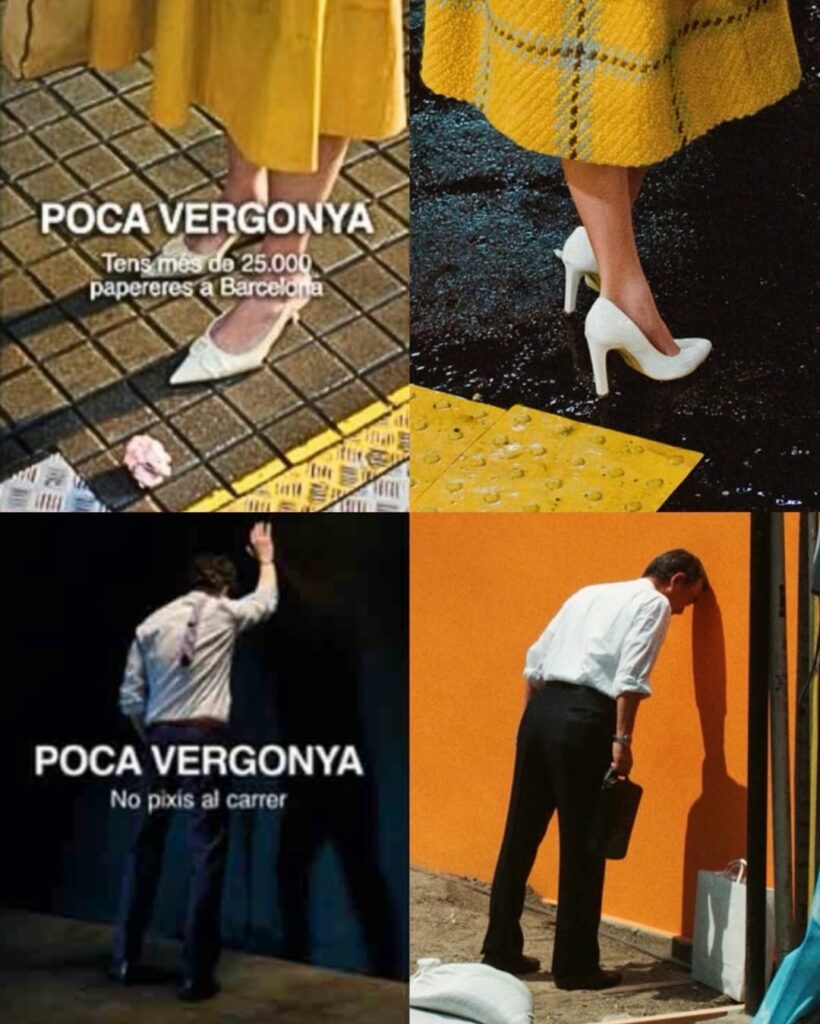 La denuncia de Noguchi no se limita a la cuestión autoral. El fotógrafo señala que nunca habría elegido representar un problema colectivo de civismo urbano colocando a una mujer sola como sujeto de la imagen, y que hacerlo en nombre de la limpieza o el comportamiento público le resulta inaceptable. La campaña, desplegada en marquesinas y estaciones de metro de toda la ciudad, muestra los pies de una mujer dejando caer un envase, con el lema «Poca vergonya» y el recordatorio de que Barcelona cuenta con más de 25.000 papeleras.